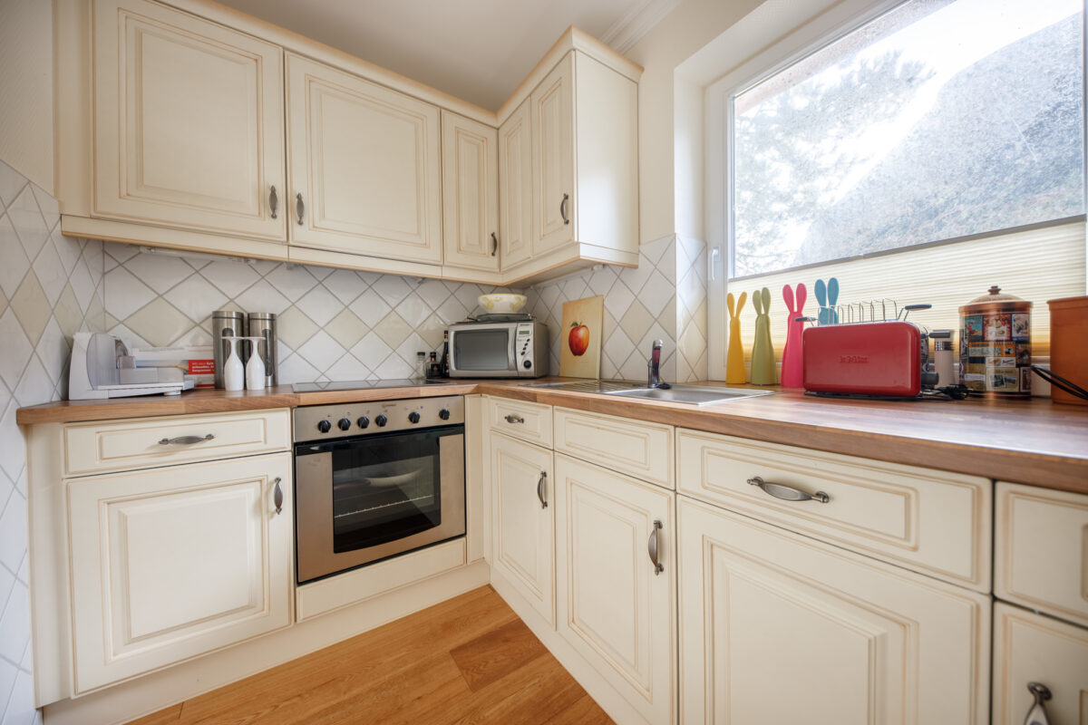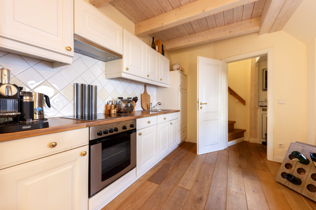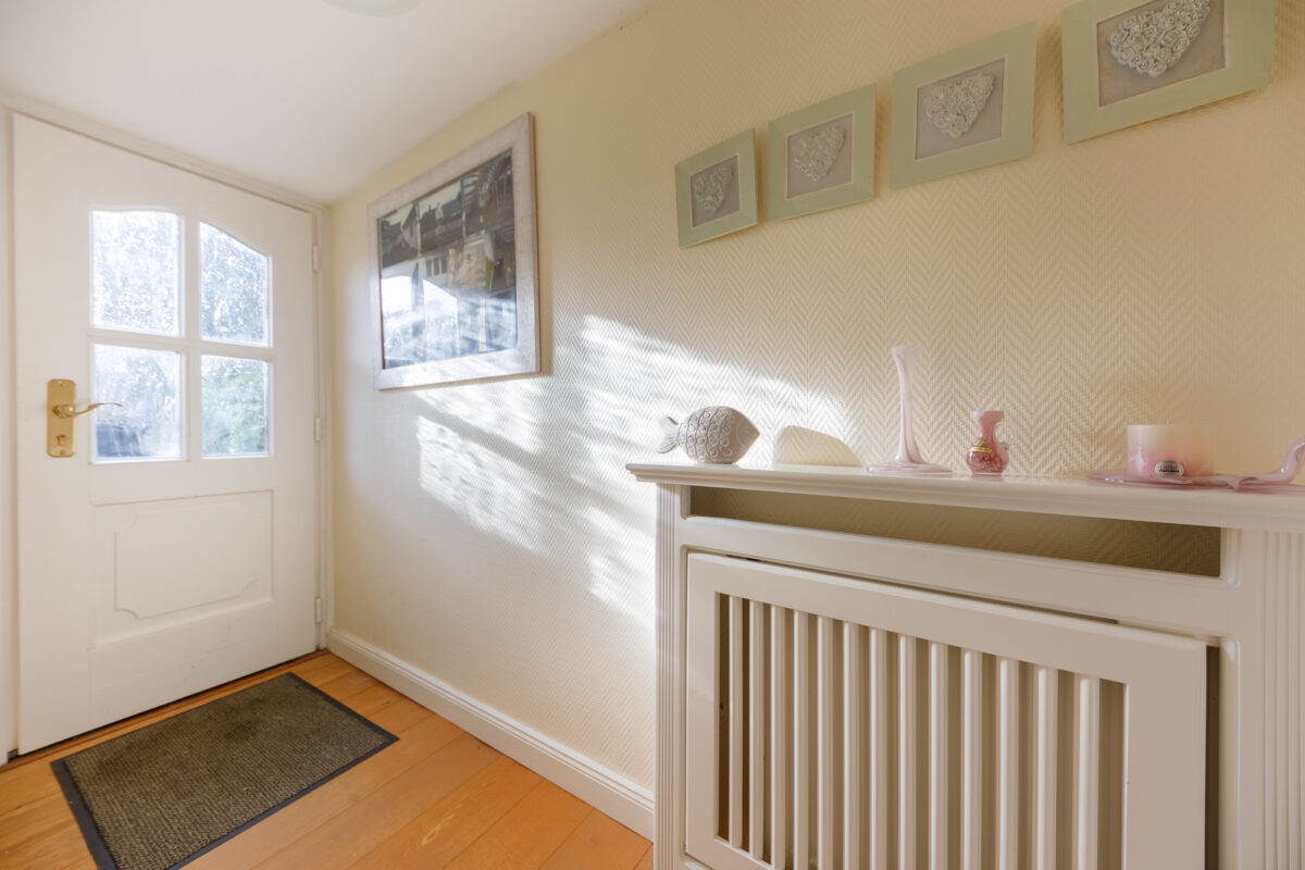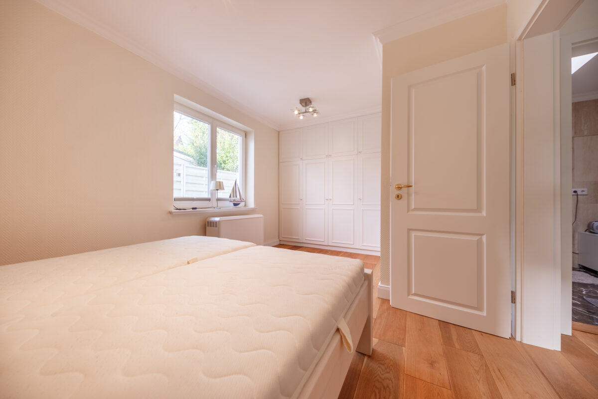 Darüber hinaus finden Sie ein separates Nebengebäude, welches vielseitig genutzt werden kann. Durch den zentralen Flur sind alle Räume des Nebengebäudes erreichbar. Eine nach Süden ausgerichtete, helle Küche bietet hier Raum für kulinarische Kreationen. Das große Wohnzimmer mit seinen zahlreichen Fenstern schafft eine warme und einladende Atmosphäre und hat direkten Zugang zur überdachten Terrasse – ein perfekter Ort zur Entspannung. Zwei zusätzliche Schlafzimmer mit Einbauschränken sowie ein weiteres Wannenbad machen dieses Gebäude zu einem idealen Rückzugsort für Familie und Gäste.