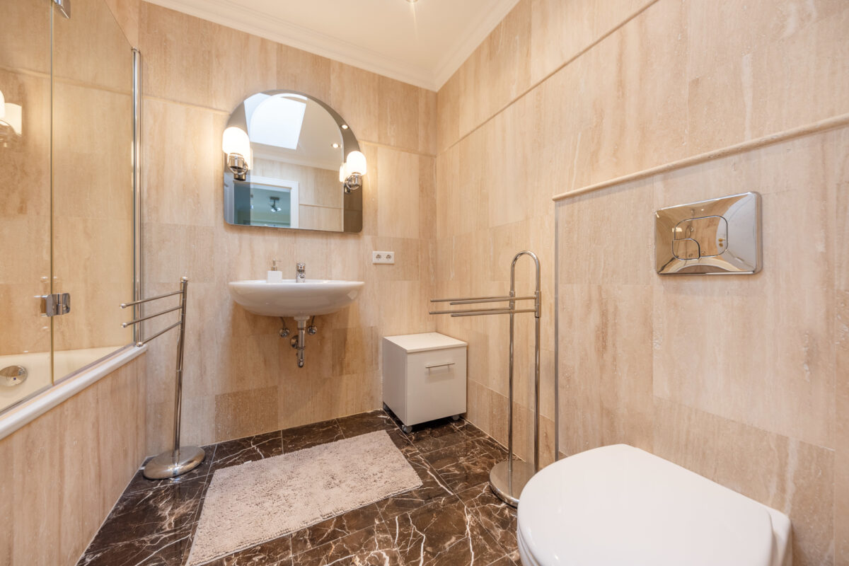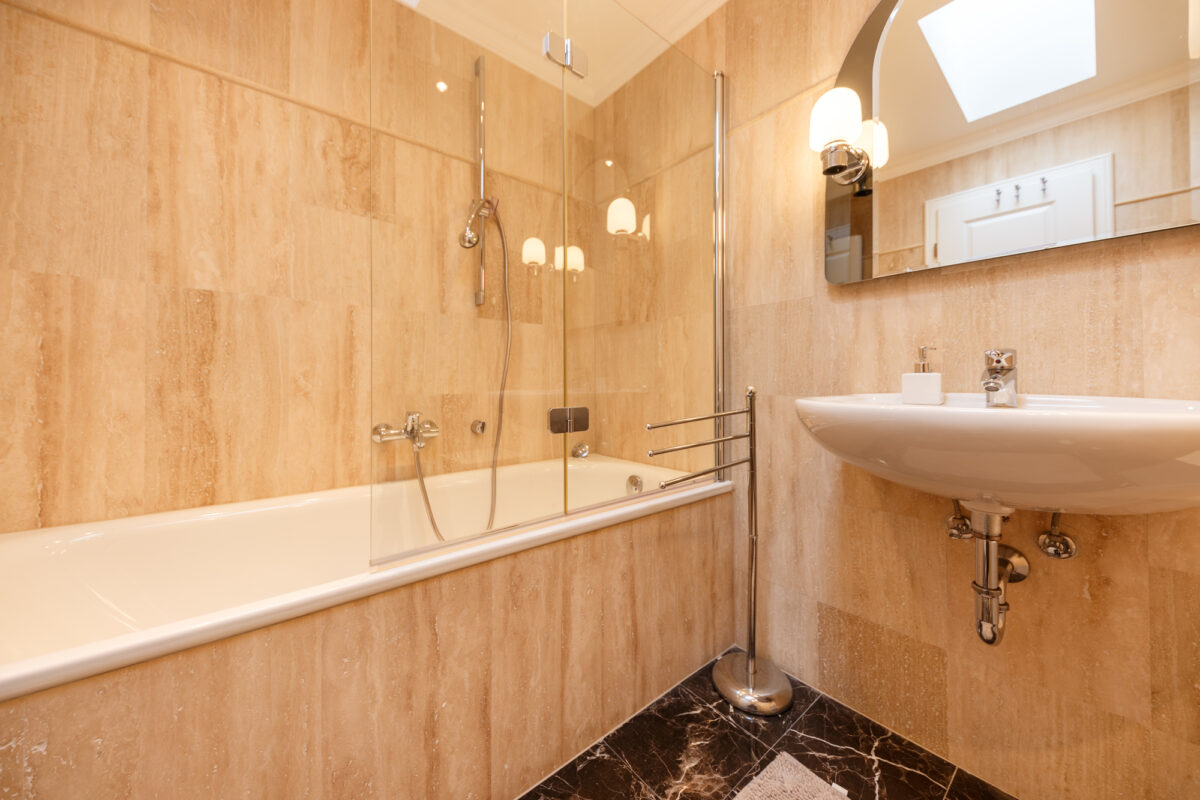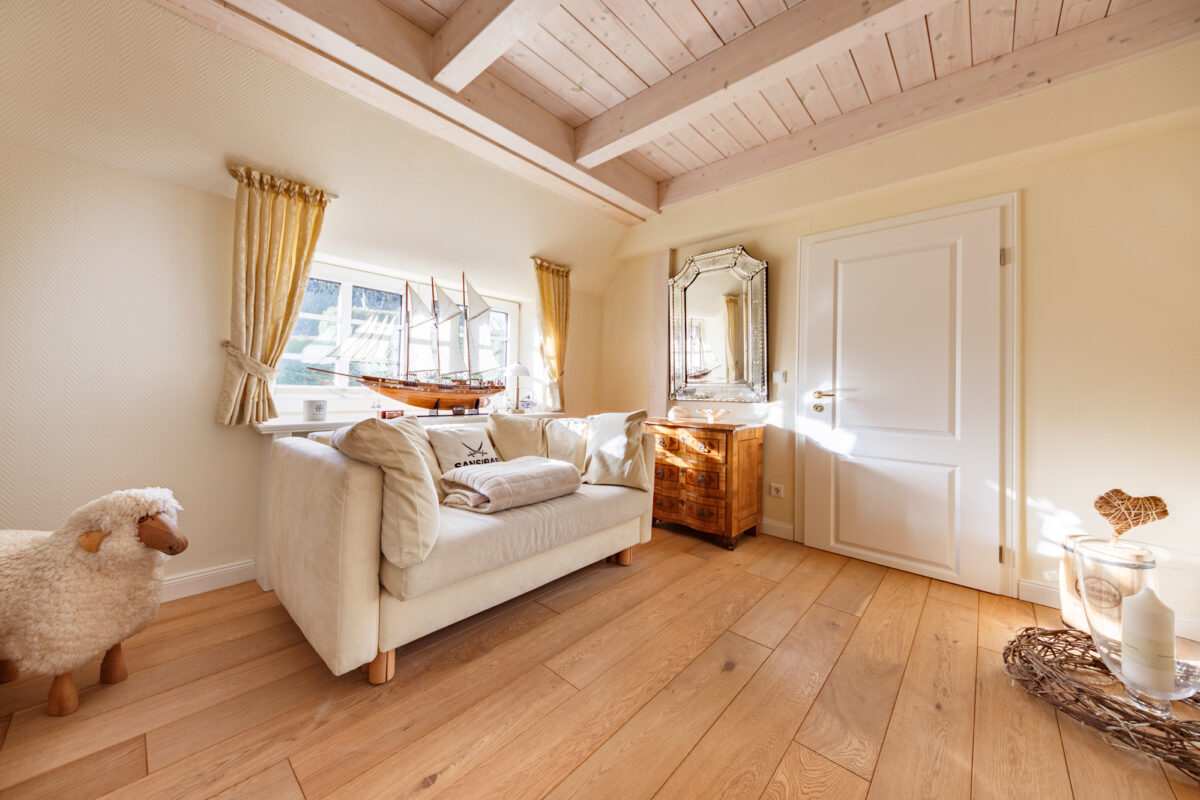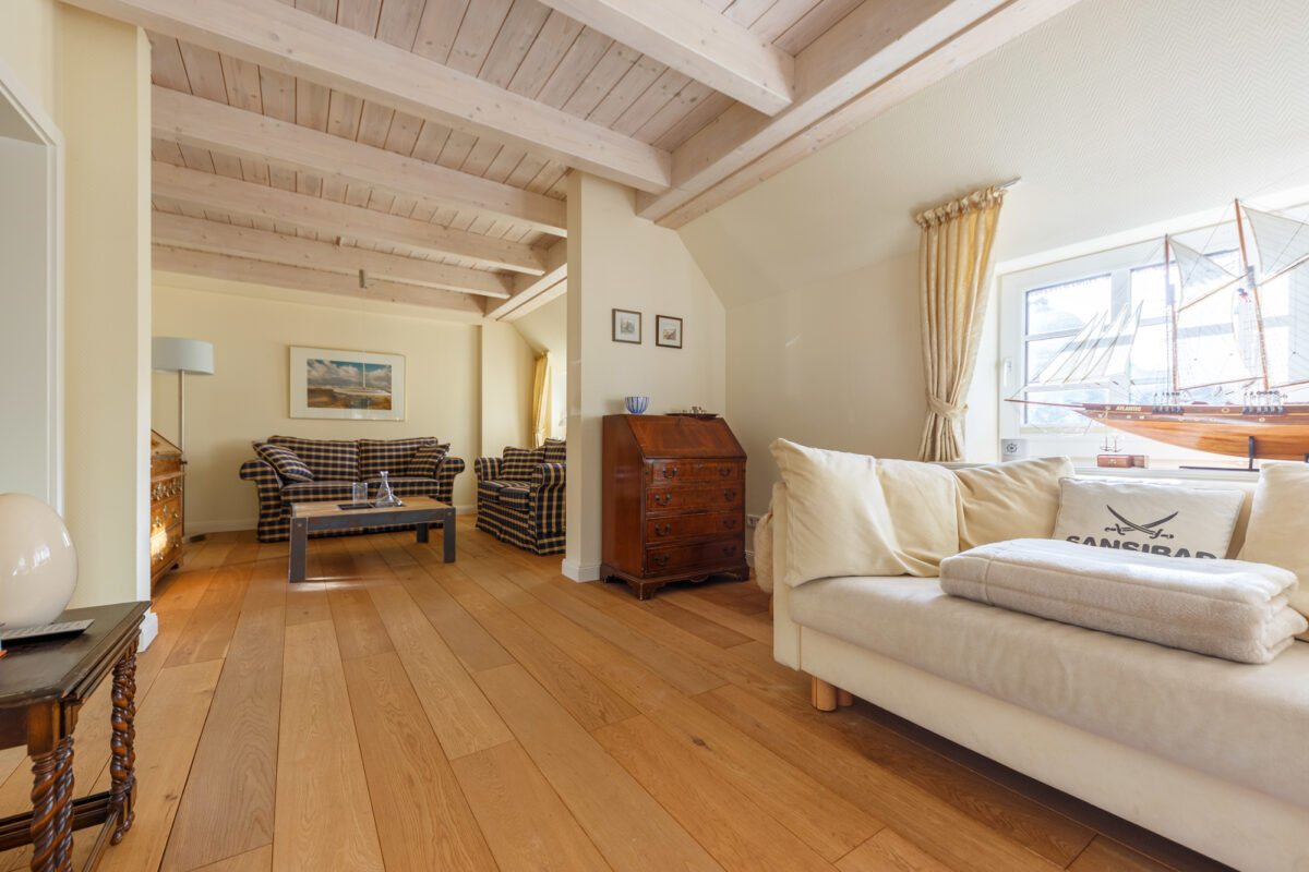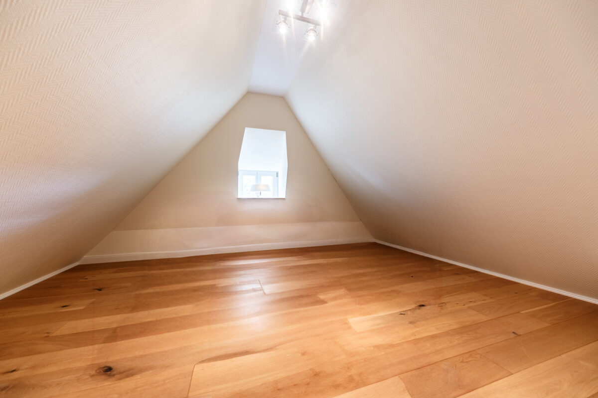 Das Dachgeschoss beeindruckt mit einem großzügigen Raum, der direkt an ein stilvolles Wannenbad angrenzt. Diese Etage bietet vielfältige Gestaltungsmöglichkeiten.