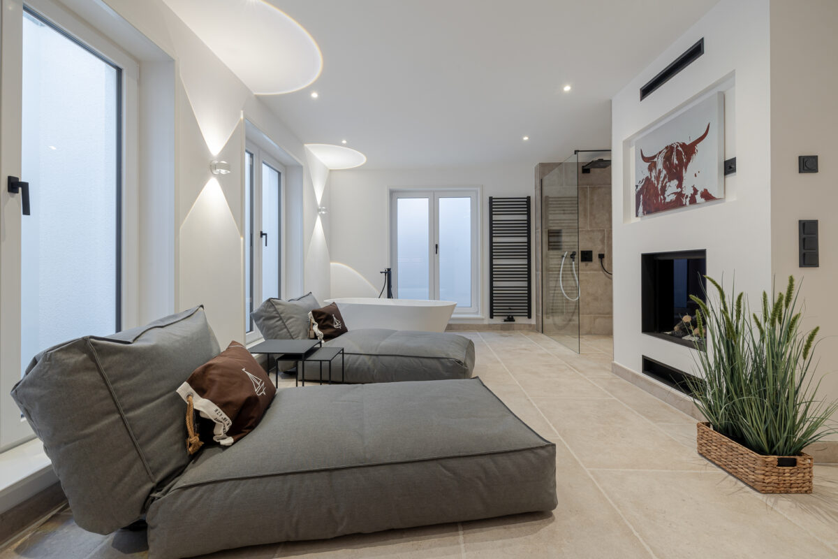Alle Bäder sind mit beheizbaren Spiegeln ausgestattet. In den Hauptbädern sind zusätzlich noch beheizbare Kosmetikspiegel integriert.