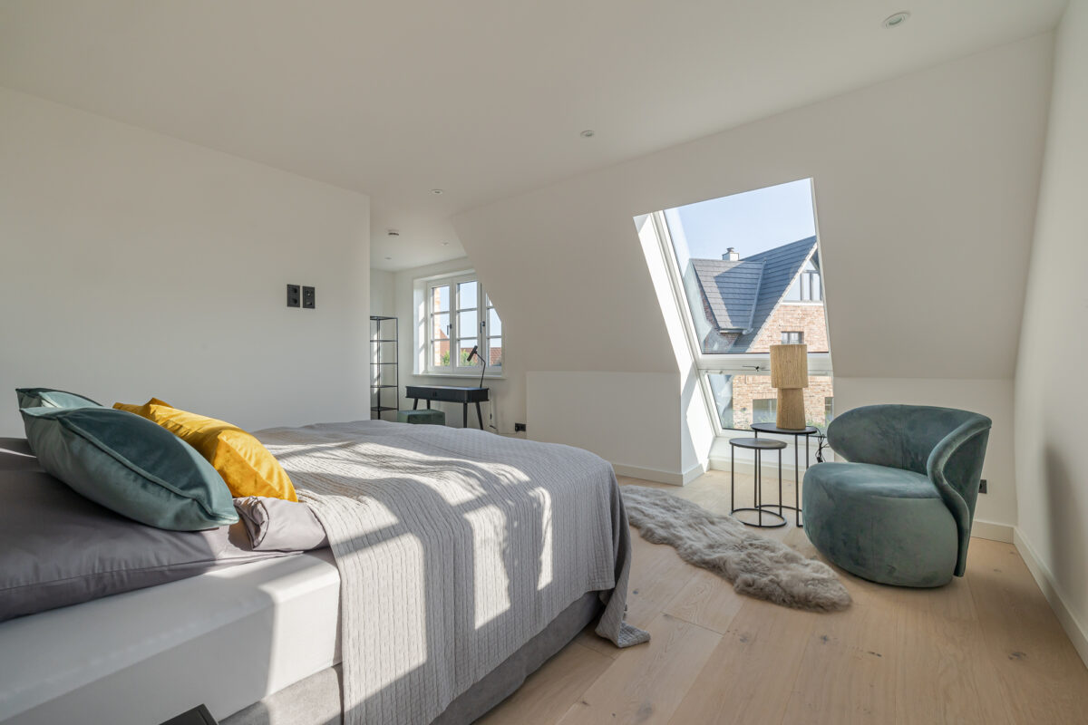 Es handelt sich um eine Immobilie, die sich durch gut durchdachte Grundrisse, einer großzügigen Raumaufteilung und lichtdurchflutete Räume auszeichnet. Das Dach ist in antiker englischer Dacheindeckung und aus edlem Kupferblech ausgeführt, was dem Haus eine einzigartige und hochwertige Optik verleiht. Die Fenster sind außen in stilvollem Quarzgrau und innen in elegantem Weiß gehalten.