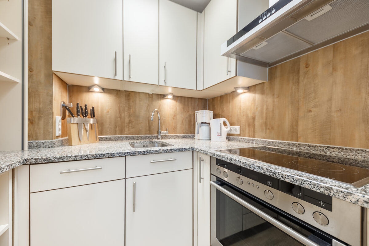 Die Wohnung bietet einen tollen Schnitt und mit viel Licht und ist über das Treppenhaus oder den sich dort befindlichen ebenerdigen Fahrstuhl zu erreichen. Die Einheit verfügt über einen Wohn- und Essbereich mit Austritt auf den nach Osten ausgerichteten Balkon, auf dem Sie bereits beim Frühstück die Morgensonne genießen können. Die Küche wurde modern und hell gestaltet und ist direkt an das Wohnzimmer angeschlossen. Das Schlafzimmer bietet ausreichend Platz für ein Doppelbett sowie einen großen Kleiderschrank und das Badezimmer ist mit einer Dusche ausgestattet. Beide Räumlichkeiten gehen separat vom Flur aus ab. Die Wohnung wurde im Jahr 2019 von den Eigentümern saniert und auch die Leitungen wurden im Zuge dessen erneuert.