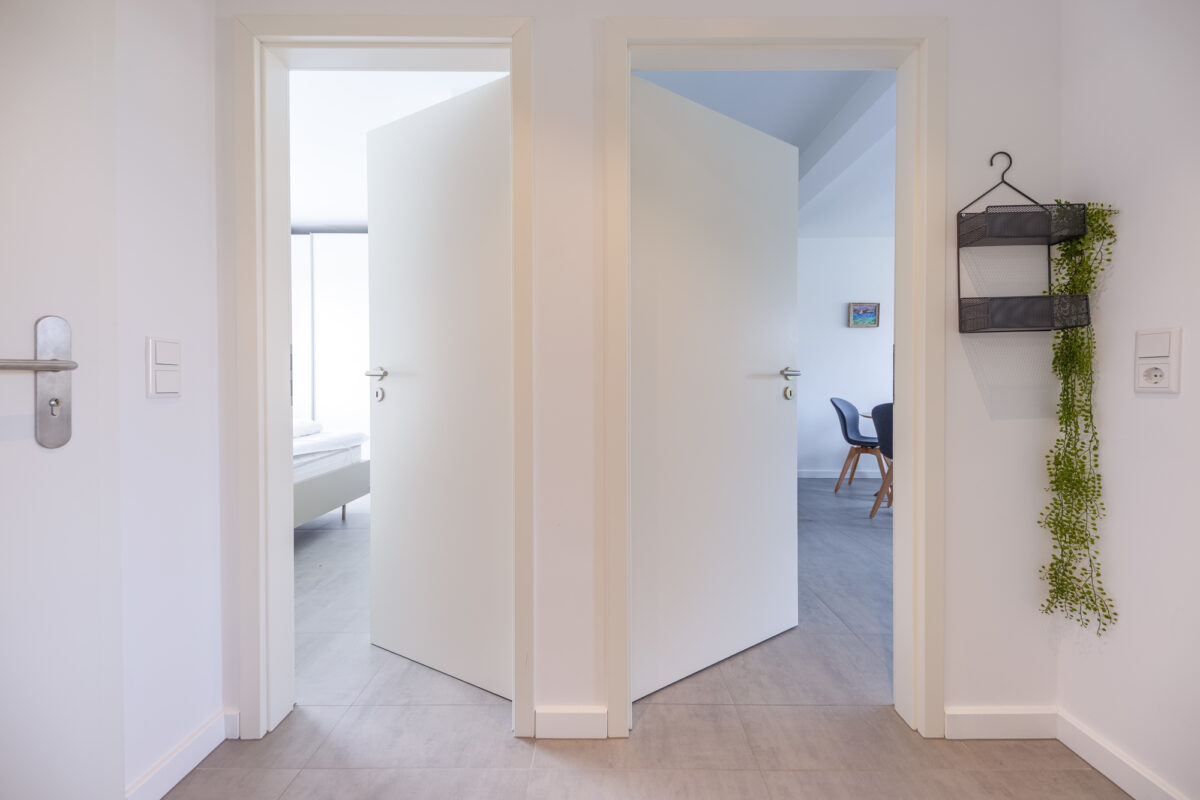 Der Flur führt zu den beiden separaten Schlafzimmern. Die durchdachte Raumaufteilung schafft ein offenes und strukturiertes Wohngefühl.